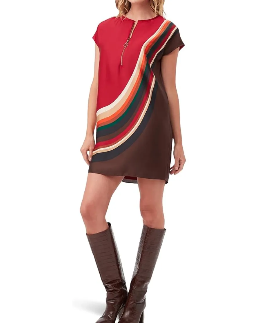 - Amp up the style game for the next party wearing Trina Turk™ Hasil 2 Dress. This stunning placed print dress comes in a mid-thigh length with cap sleeves and a slight high-low hem. The quarter-zipper closure with a circle pull allows for a v-neck line. Pair it with tall boots for an exquisite statement look.