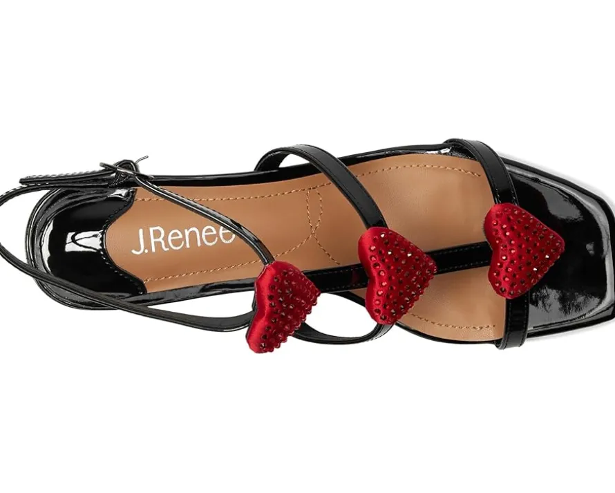 - The J. Renee® Heartly sandals are square-toe-shaped sandals that have a memory foam and latex insole and synthetic lining for all-day comfort. These heeled sandals feature a polyurethane upper that is styled with embellished heart detail for an eye-catching twist. The ankle strap with an adjustable buckle closure ensures a perfect fit. Match your different outfits and styles with these fashionable sandals.