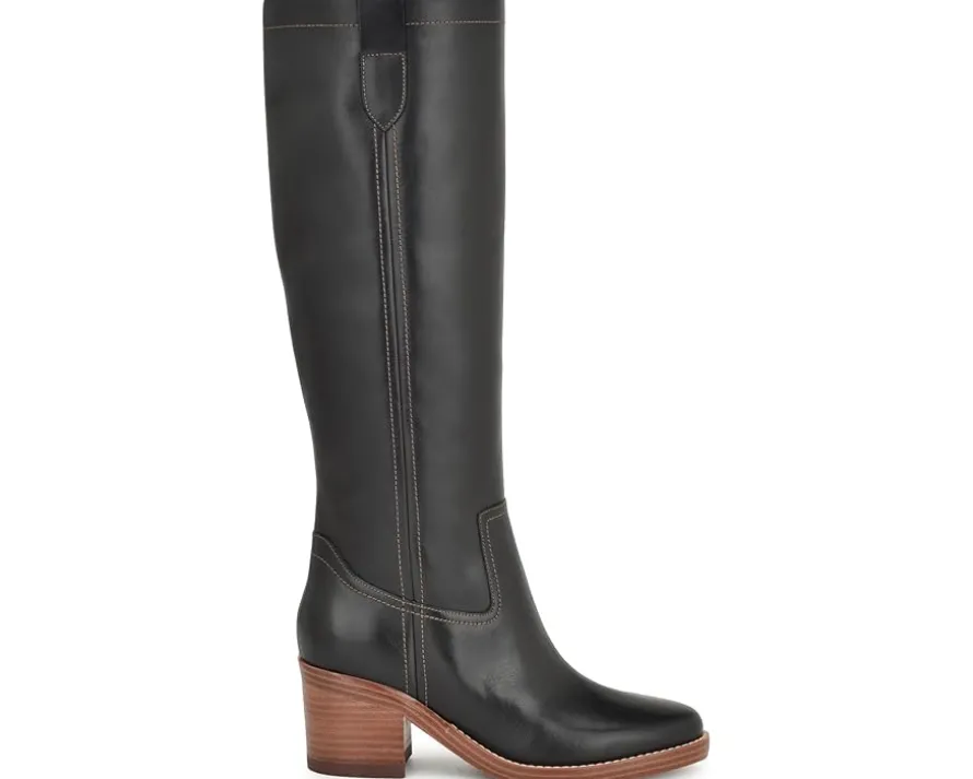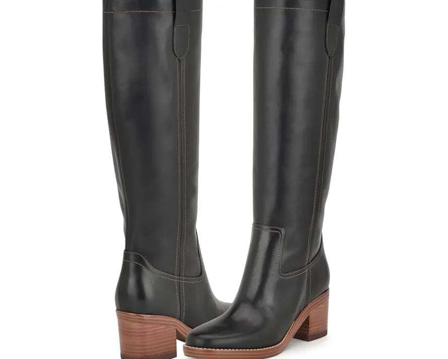 - Step in style and comfort by wearing the Nine West® Hecee boots. The pull-on style knee-high boots have a round-toe design with statement block heels for an effortless stylish look. The suede leather upper with textile and man-made lining and faux leather insole makes this pair of boots perfect for prolonged wear.