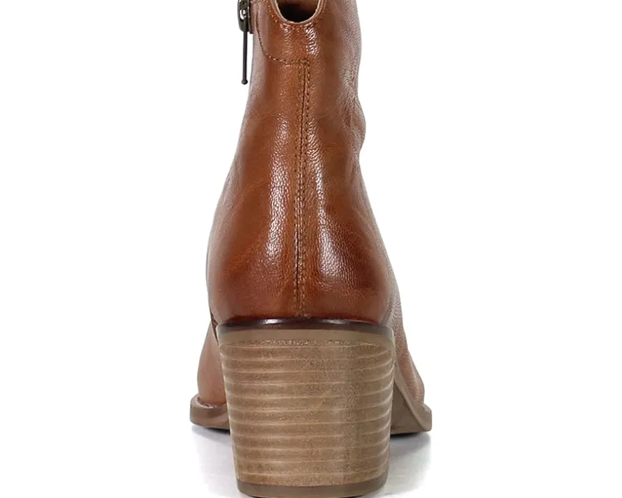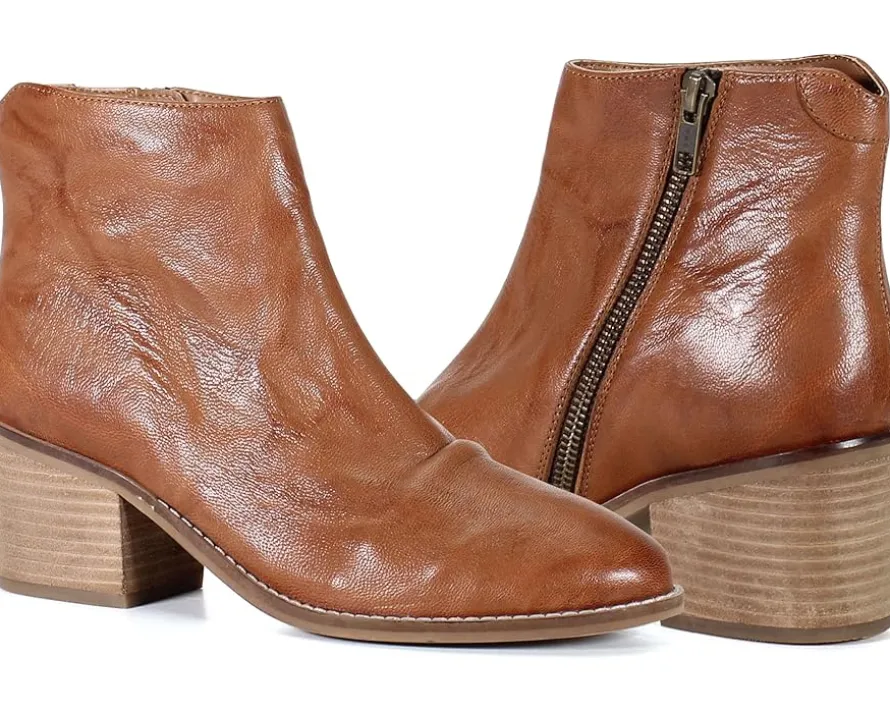 - Ankle-high boots featuring leather upper with a unique unrefined finish and a textured warm undertone.
