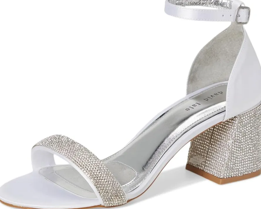 - A gorgeous and glamorous pick for your evening parties, the David Tate® Icon Heels showcase a premium quality satin upper perfectly teamed with shimmery rhinestone embellishments on the toe strap. Equipped with a feminine buckle strap closure at the ankle, the shoes look more stylish with the high quality sockliner made with satin, suede, and soft leather and surrounded by a metallic frame. The rhinestone-covered block heel lifts your look with some added charm.