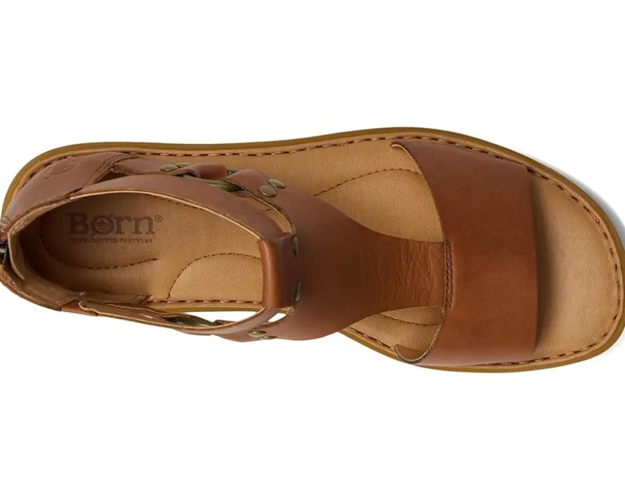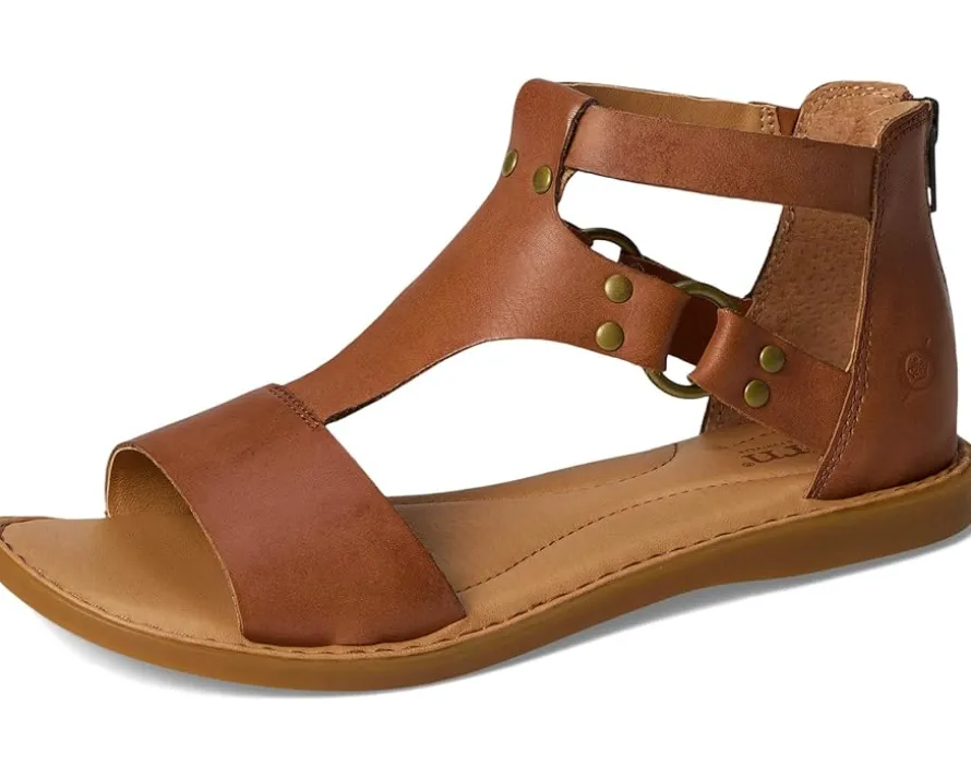 - Experience the comfort of the Born® Indi sandals designed with soft leathers and even softer linings. The soft hand-finished full-grain leather upper features a zippered back closure for easy wear. These flat sandals are designed with a cushioned microfiber-covered foam with extra foam for added comfort and a breathable soft microsuede lining. The inside Opanka handcrafted construction offers added durability.
