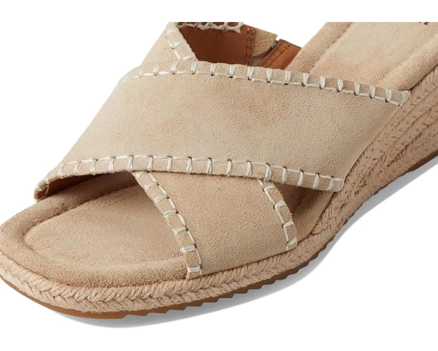 - The Sofft® Indie is here with its X-band slide design and intricate whip-stitching detail. The espadrille style adds a touch of rustic charm, while the wrapped rope wedge mid-heel provides a flattering lift.