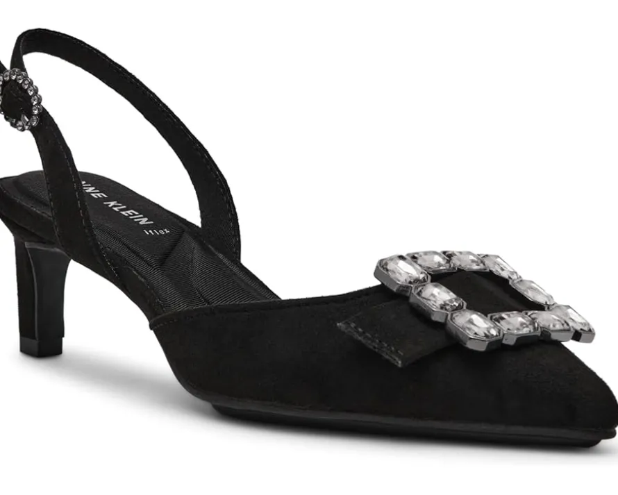 - The Anne Klein® Inez is a pretty slingback pump design with a low kitten heel and a padded iflex sole for an easy comfortable take on this classic feminine look. A metallic buckle accent over the pointed toe finishes the design with an extra touch of sophistication.
