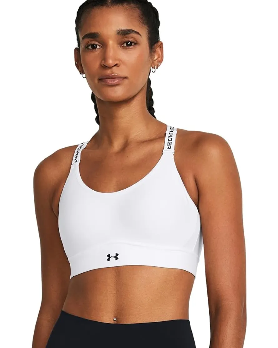- Experience sculpting comfort and poise wearing the Under Armour® Infinity Mid Impact Sports Bra. Featuring HeatGear® fabrication, the bra wicks sweat and dries quickly while delivering a next-to-skin feel. With adjustable shoulder straps, it has hook-and-eye closure at the back.