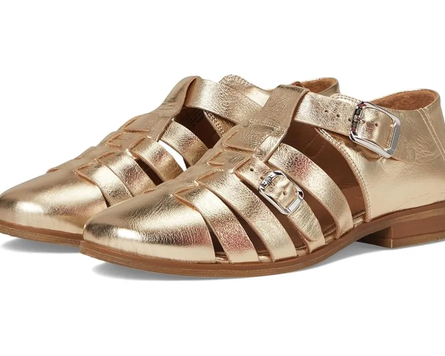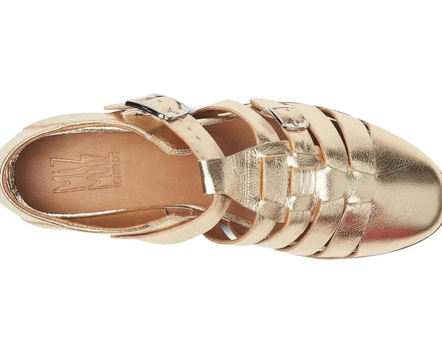 - Revamp your basic looks by complementing outfits with the Miz Mooz® Ivanna Sandals in a stylish low-top fisherman silhouette. The modern almond toe sandals come with a metallic leather upper with two trendy buckles, a leather lining, and a cushioned ethylene vinyl acetate insole.