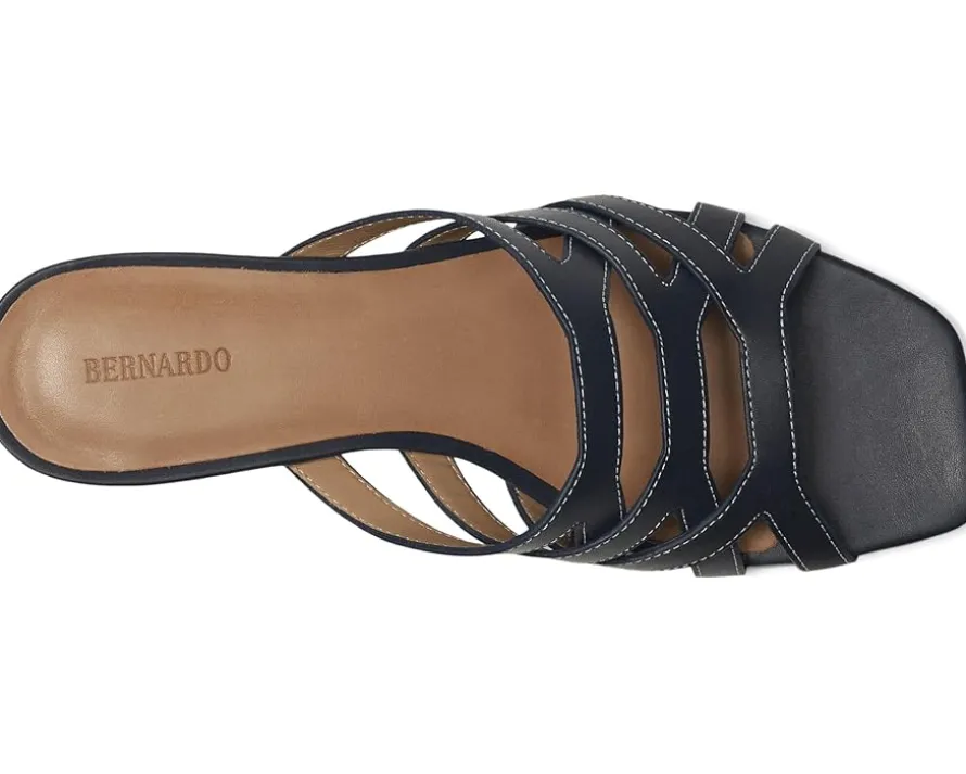 - Create space. The Bernardo® Jacin slip-on heeled sandal cultivates ease with its simply elegant leather upper and work-play stacked heel, which invite you to both embrace the everyday and explore new horizons.