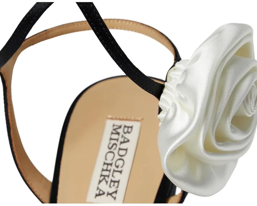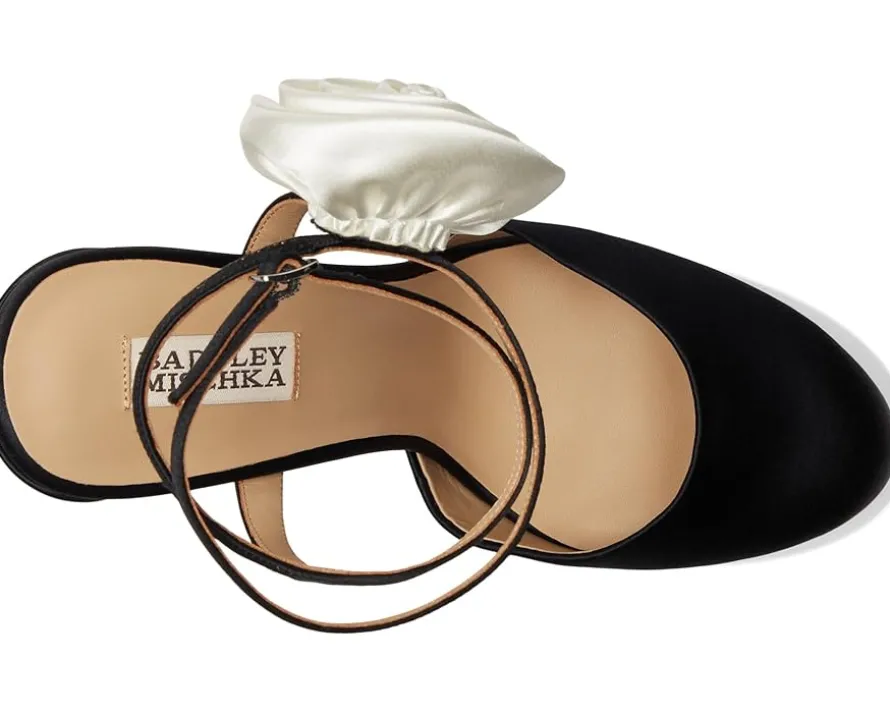 - Discover a new level of elegance wearing Badgley Mischka® Janessa – a stunning blend of sophistication and statement-making style. Featuring a luxurious silk upper adorned with an oversized flower, these platform pumps are your go-to for standout occasions. The leather lining and outsole promise breathable comfort, while the EVA insole cushions every step. A sleek buckle ankle strap ensures a secure fit, and the block heel adds height with stability.