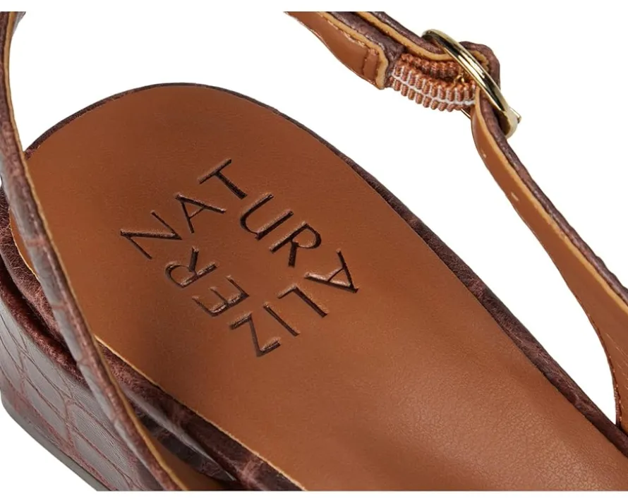 - Create a stylish look wearing the Naturalizer® Jayla sandals. Powered by REZORB™ for sneaker-level comfort, these are your new favorite slingback heels. Slipping into these low block heels always feels like a dream. Slingback dress shoes with D’Orsay side styling. It has a leather or metallic leather upper with a closed square toe design. Contour+ Comfort technology for a premium fit and all-day comfort experience.