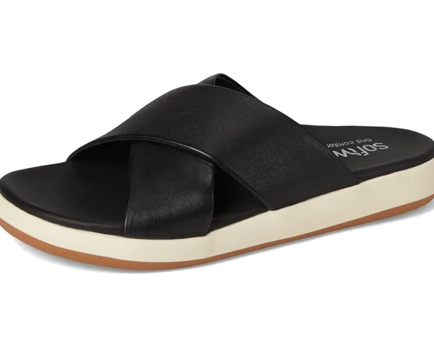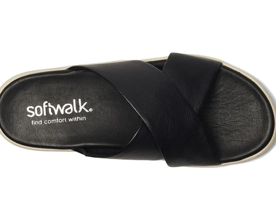 - Elevate your casual style with the Softwalk® Jesi sandals, the perfect blend of simplicity and comfort. The leather upper features crisscross straps for a chic look and a slip-on style for easy on and off. These slide sandals are made of a leather insole and lining. The cushioned footbed with arch support ensures a comfortable walking experience.