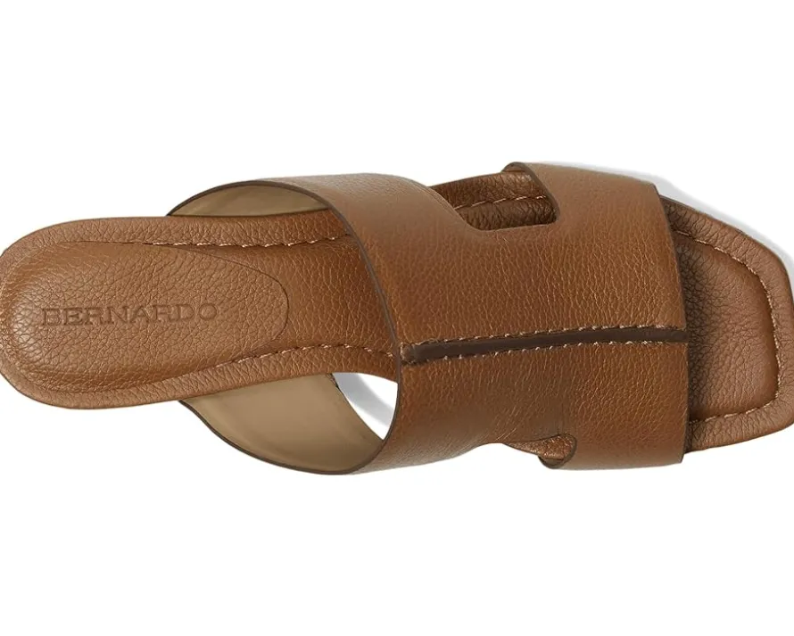 - Shape shift. The Bernardo® Jewel sandals take you anywhere with elegance by combining an architectural upper – handcrafted from supple, yet tactile leather – with modern stacked block heels and padded leather footbed. These heeled sandals feature a slip-on style for easy on and off. The leather lining and a single strap design add to their style and comfort. These leather heels are perfect to pair with different dresses and party outfits.