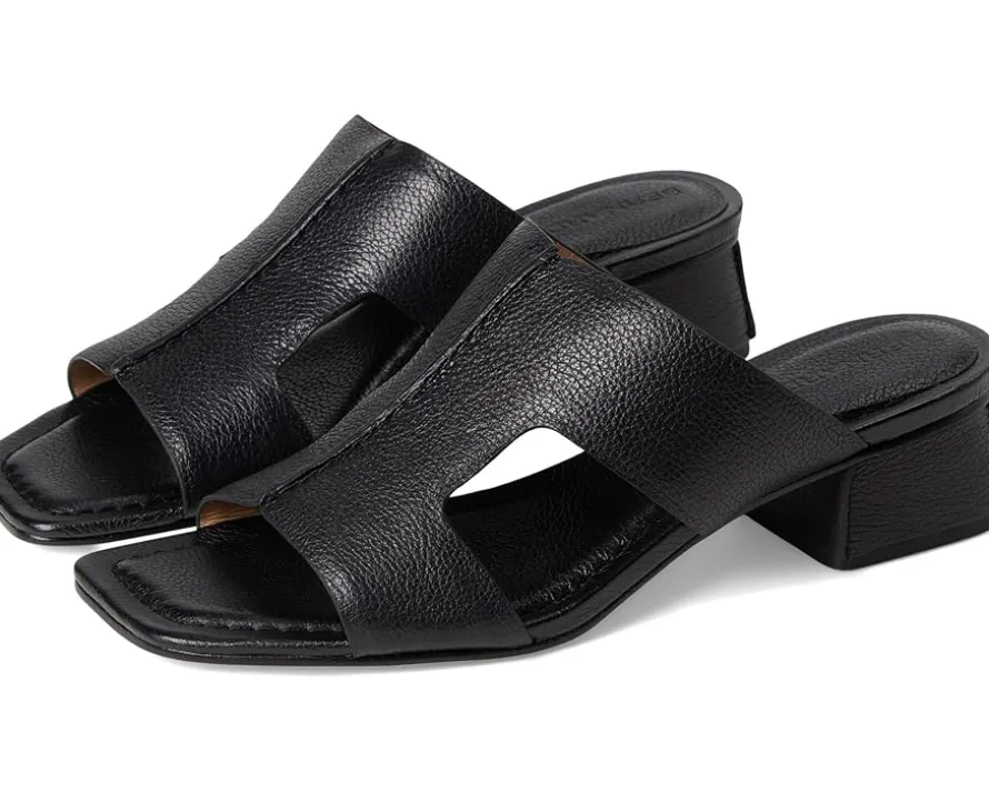 - Shape shift. The Bernardo® Jewel sandals take you anywhere with elegance by combining an architectural upper – handcrafted from supple, yet tactile leather – with modern stacked block heels and padded leather footbed. These heeled sandals feature a slip-on style for easy on and off. The leather lining and a single strap design add to their style and comfort. These leather heels are perfect to pair with different dresses and party outfits.