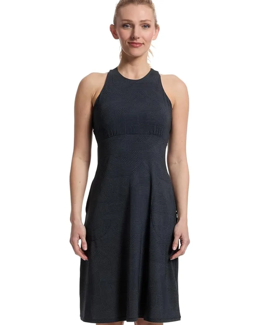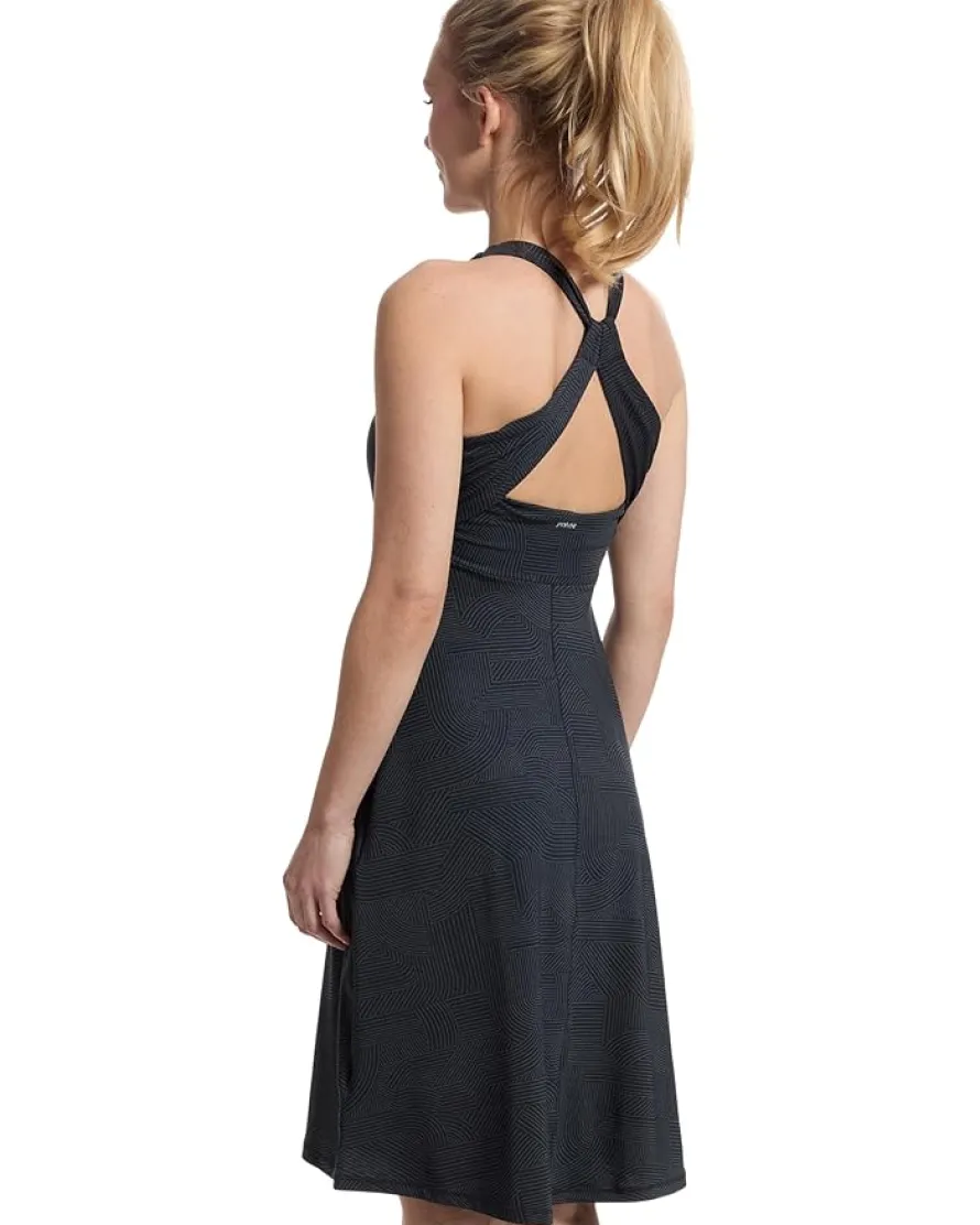 - The Prana® Jewel Lake Summer Dress is crafted from polyester knit fabric that keeps you cool and comfortable all day. This short dress features UPF 30+ protection that protects against harmful sun rays while the built-in bra with removable pads provides support. The sleeveless style and a high neckline offer added style. This printed dress features a strappy back design that makes it ideal for the warm weather.