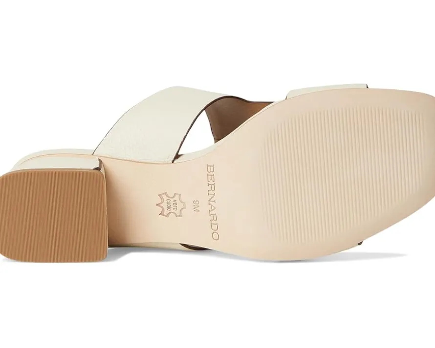 - Shape shift. The Bernardo® Jewel sandals take you anywhere with elegance by combining an architectural upper – handcrafted from supple, yet tactile leather – with modern stacked block heels and padded leather footbed. These heeled sandals feature a slip-on style for easy on and off. The leather lining and a single strap design add to their style and comfort. These leather heels are perfect to pair with different dresses and party outfits.