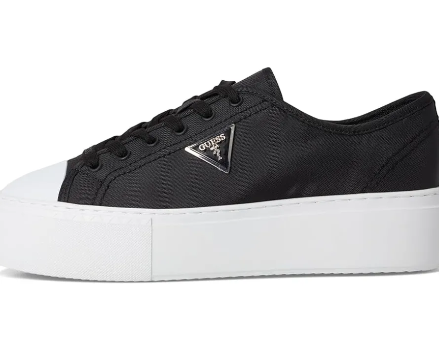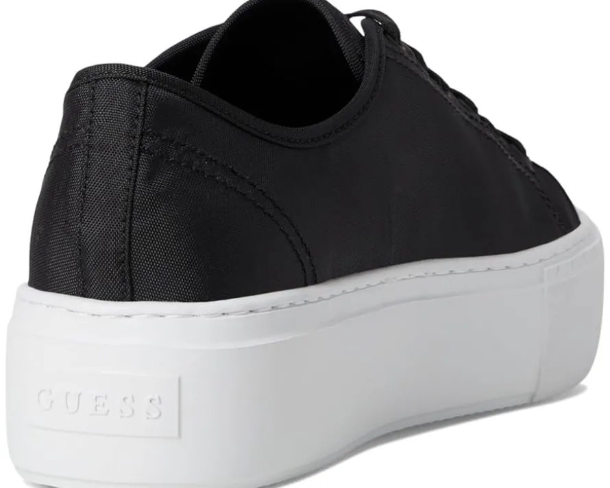 - The GUESS® Joezi shoes give a casual dress-up-or-down appeal. These platform sneakers are accented with a signature Guess triangle logo that is ready to wear with jeans or a dress. They are designed with a cushioned insole, synthetic sock lining, and synthetic rubber lining. The rubber upper features a lace-up closure for a secure fit. These lace-up sneakers are perfect to pair with different outfits and styles.