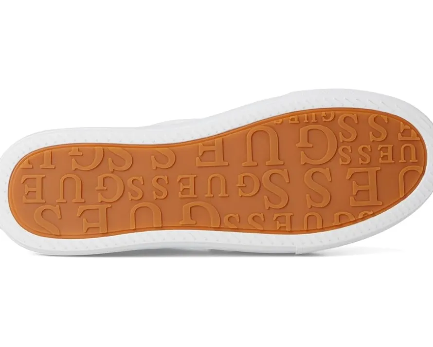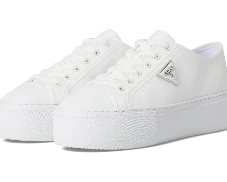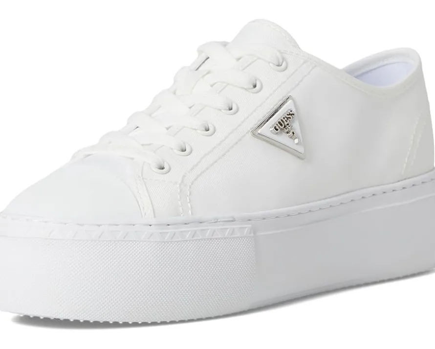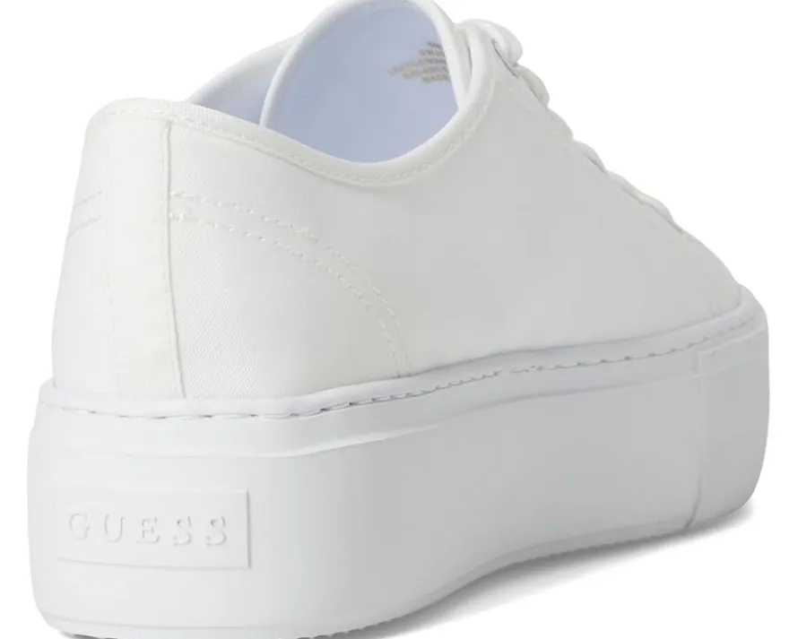 - The GUESS® Joezi shoes give a casual dress-up-or-down appeal. These platform sneakers are accented with a signature Guess triangle logo that is ready to wear with jeans or a dress. They are designed with a cushioned insole, synthetic sock lining, and synthetic rubber lining. The rubber upper features a lace-up closure for a secure fit. These lace-up sneakers are perfect to pair with different outfits and styles.
