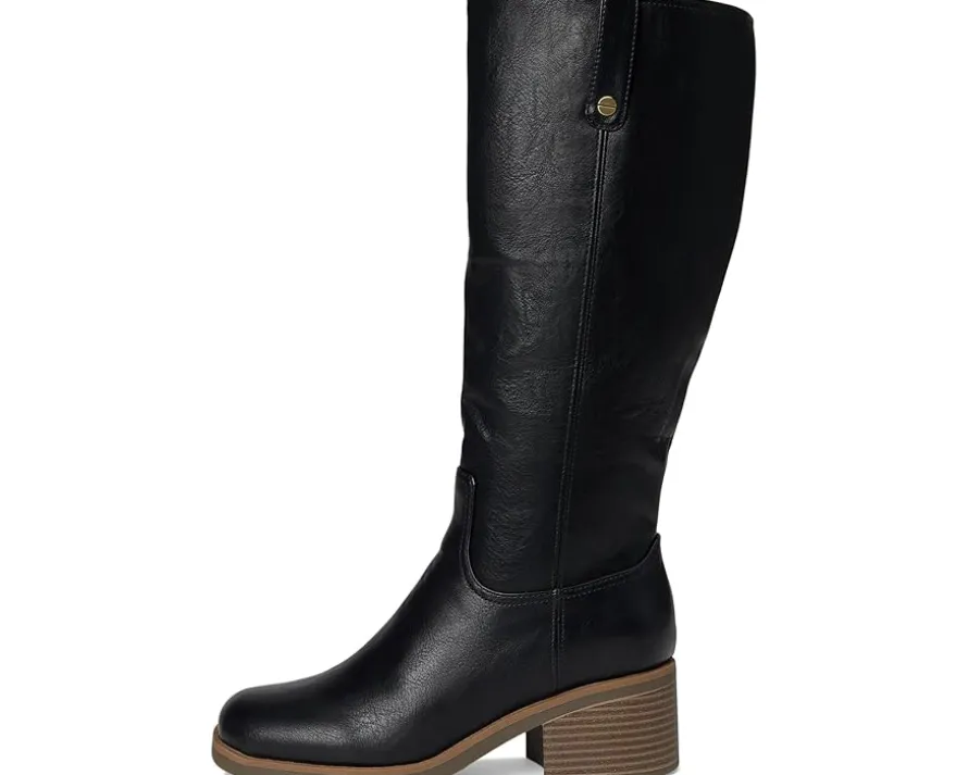 - The Dr. Scholl’s® Joplin Riding Tall Boots feature a low-chemical faux leather upper and a sleek silhouette accented by western-inspired stitching, rivet details, and a square toe. The inside zipper ensures effortless on/off wear, while the stacked block heel and lightweight blow thermoplastic rubber outsole offer stability with every step. Crafted with linings and topcloth partially made from recycled plastic bottles, plus a recycled toe box and heel counter, the Joplin also features a cushioned insole made with 15% plant-based BLOOM® foam. Designed to promote freshness and long-lasting comfort, the insole technology supports your stride while minimizing odor and moisture buildup—so you can move confidently.