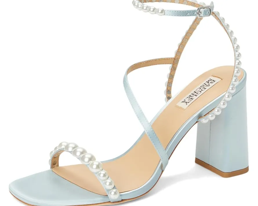 - The Badgley Mischka® Jordyn heels are block-heeled sandals with pearl ornament, making them perfect for parties and events. These heeled sandals are made of foam insole and breathable leather lining for added comfort. Their silk upper features an ankle strap with an adjustable buckle closure. Add a chic look to your outfits with these heels.