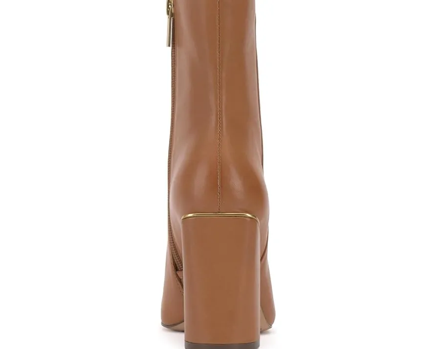 - The Jordyn dress bootie has a full inside zip and rounded toe. The covered block heel is 3.5 inches. Finished with a metal decorative rand, it is sure to stand out in your closet as well as on your feet.