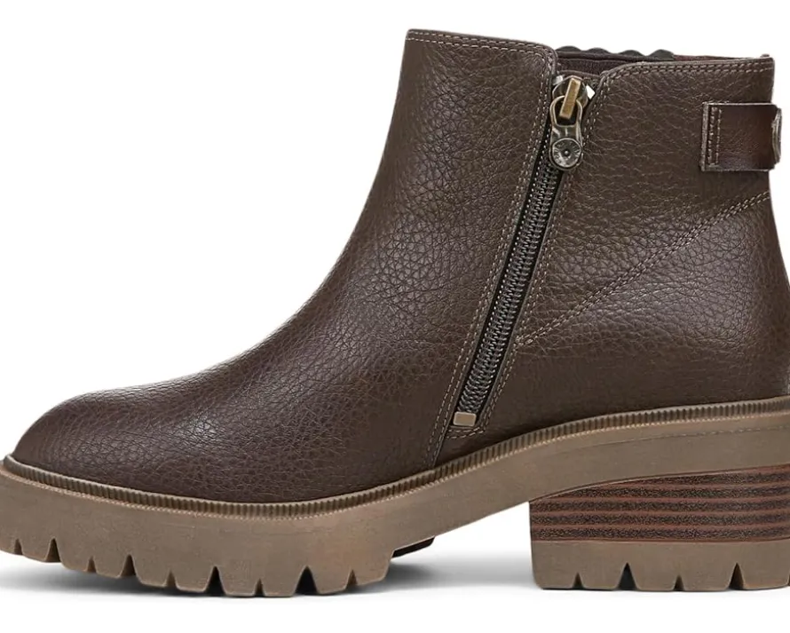 - The ankle-high Blowfish® Malibu Joy Booties feature a side stretch panel and inside zipper for easy entry. Designed with round toe shape and an aggressive lug sole, the boot stands on a stacked block heel. The faux leather upper construction accompanies a sleek hardware detail at the back.