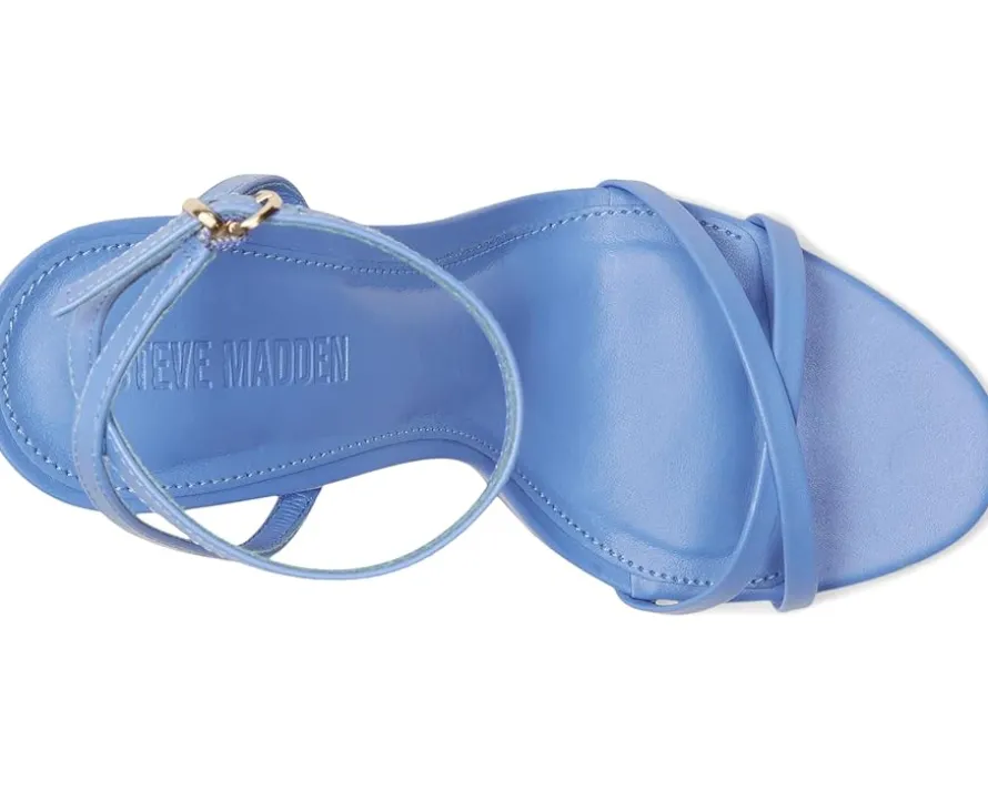 - Enhance your outfit with these sleek Steve Madden® Jypsey Heels. The strappy design and secure ankle strap provide a sophisticated touch, while the open rounded toe and crisscross back add a unique flair. These come with a leather upper, synthetic lining, and a faux leather insole. With a stunning stiletto heel, these heels are perfect for any formal or professional occasion.