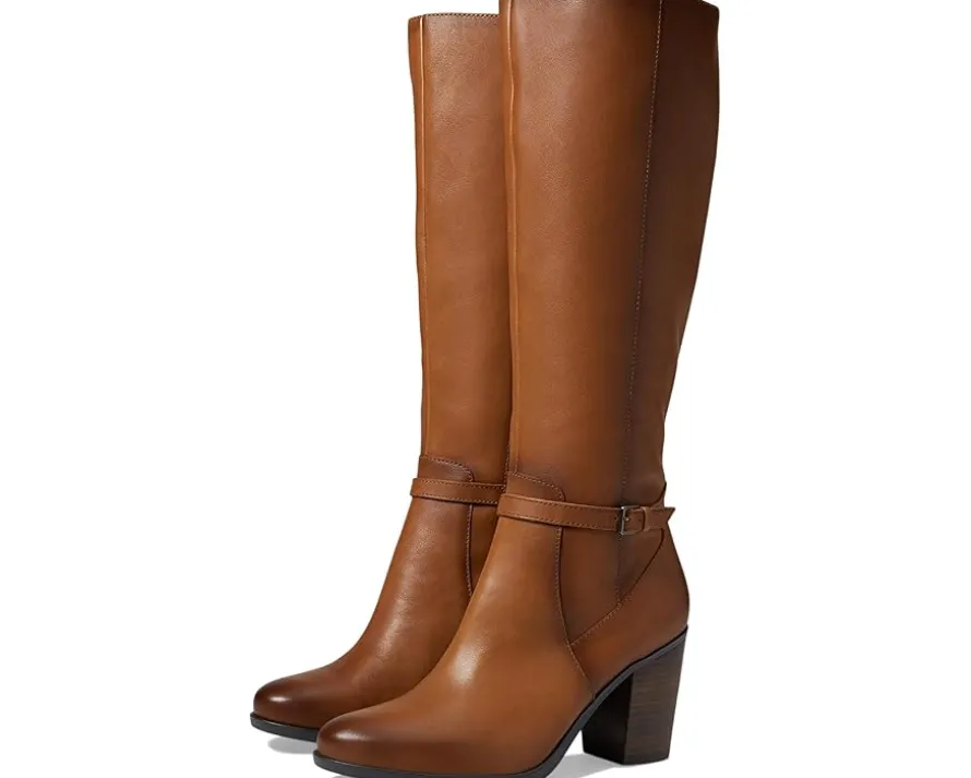 - Polished + comfortable tall boot with wraparound strap and buckle detail