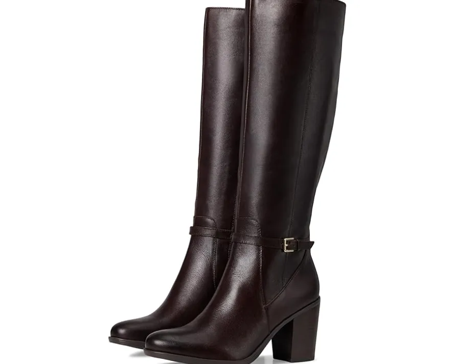 - Tailored for confidence: The Naturalizer® Kalina Narrow Calf is where polished sophistication meets your ideal, all-day comfort. This trendy knee-high boot is your go-to for day-to-night transitions, from the office to evening outings. Crafted with a smooth leather upper and soft fabric lining, it features a round toe and a flattering block heel that balances elegance with stability. The wraparound strap and buckle detail add a chic finishing touch, while the zippered side closure and goring panel ensure easy on-and-off with flexible movement. Designed with Contour+ Comfort technology, the foam insole delivers a premium fit and cushiony support for hours of wear, complemented by a non-slip synthetic rubber outsole for confident strides.