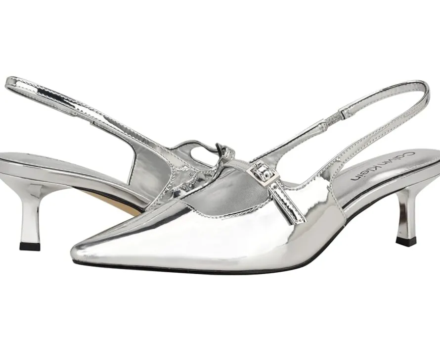 - A versatile choice, the Calvin Klein® Kallien dress pumps will turn heads. It features a slingback strap, stylish pointy toe, and tapered heel that will elevate any outfit. The pumps are crafted with a faux patent leather upper, man-made lining, and a comfortable insole.