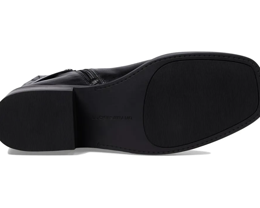 - Style your everyday look in the shiny and classy design of the Lucky Brand® Kamany boots with horseshoe-shaped metallic hardware accenting the sides. The ankle-length silhouette comes with a lace-up closure on the side.