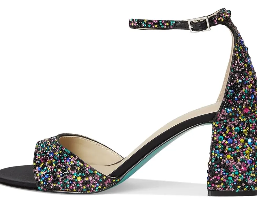 - The Blue™ by Betsey Johnson Kami is a flirty open-toed sandal glistening allover with embellishments. With an adjustable buckle at the ankle strap, it has a sturdy block heel that offers heightening comfort.