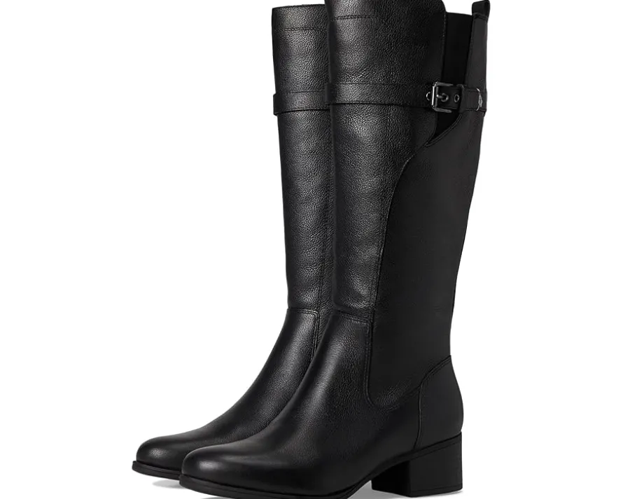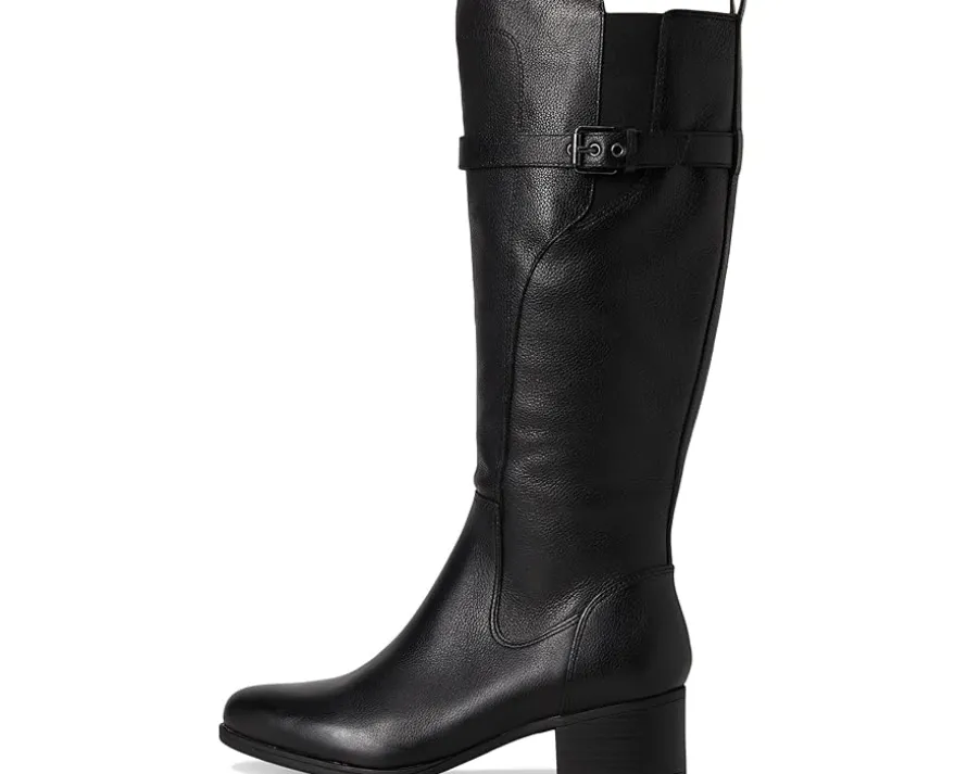 - The Naturalizer® Kenna Knee High Boots blend timeless flair with trendsetting detail for a look that’s equal parts bold and refined. Designed in rich leather with western-inspired stitching, a wraparound strap, and a sleek buckle accent, these tall boots bring confident charm to any outfit. The knee-high silhouette, round toe, and block heel create a flattering, versatile profile that pairs effortlessly with skirts, denim, or dresses. A zippered side closure and back pull tab make slipping in easy, while elastic goring at the calf ensures a flexible fit. Finished with Contour+ Comfort technology, a foam insole, and a synthetic rubber outsole, every step feels supportive and smooth.
