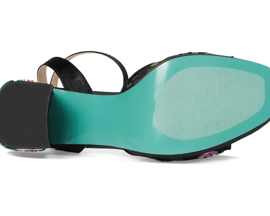 - Bold and romantic, the Blue™ by Betsey Johnson Kenni heels feature floral embroidery on a statement platform. These heeled sandals are designed with a faux leather upper, insole, and lining. The adjustable ankle strap ensures a secure fit. With a secure fit and cushioned comfort, these embroidered sandals are made to turn heads day or night.