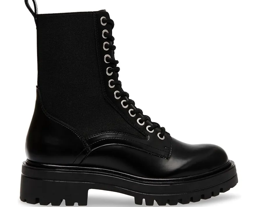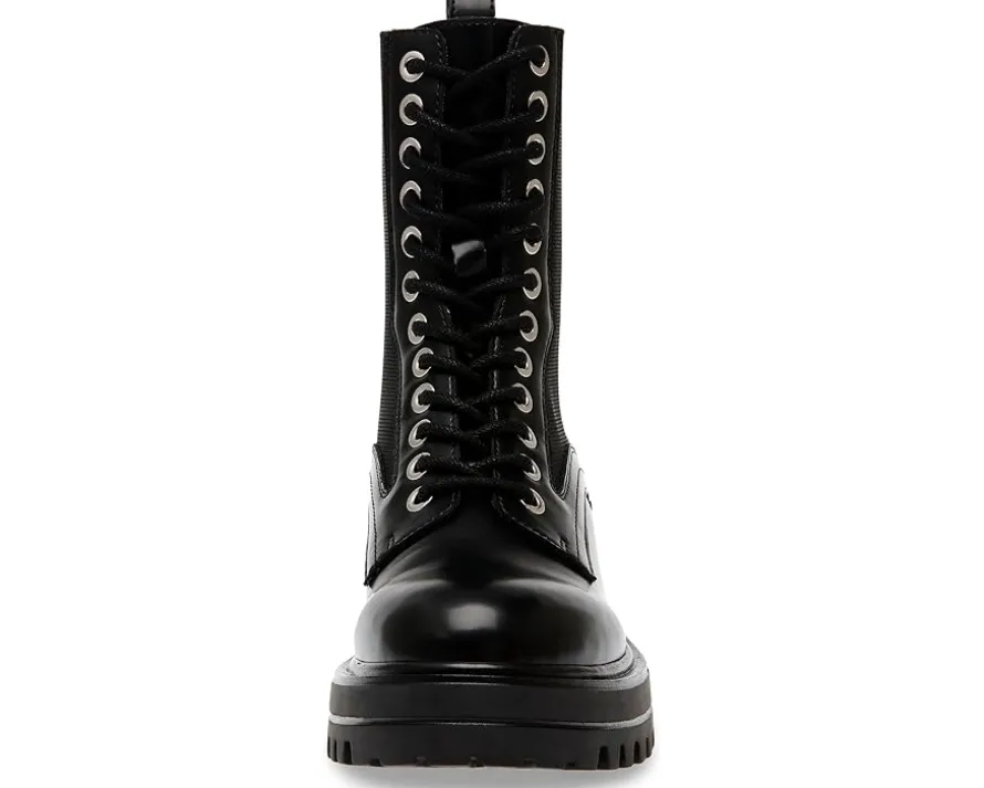 - Casual yet chic, the Steve Madden® Kenny complement all outfits with excellence. These featire a calf-high length, a round toe shape, laces for adjustability, and a pull-ab on the back for donning and doffing. The shoes are engineered with a leather upper, synethetic rubber lining, and synthetic insole.