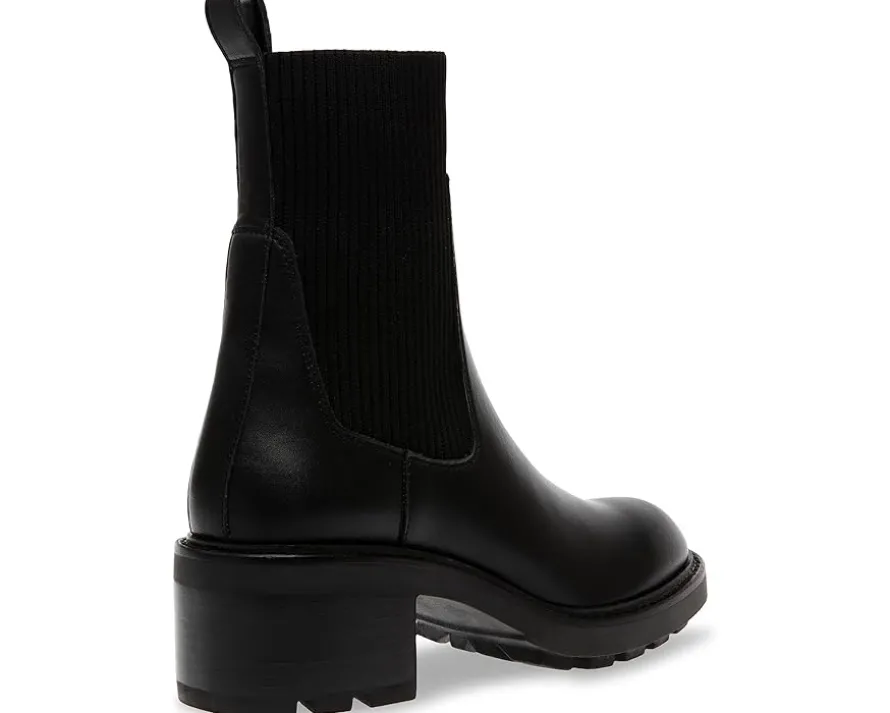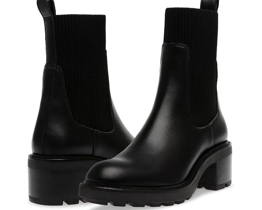 - Walk in absolute comfort and style by wearing the Steve Madden® Kiley. The pull-on style Chelsea boots have a stretch gore design on both sides for a comfortable fit. The round-toe design, ankle-high boots have leather upper with synthetic rubber lining and synthetic insole for added convenience.