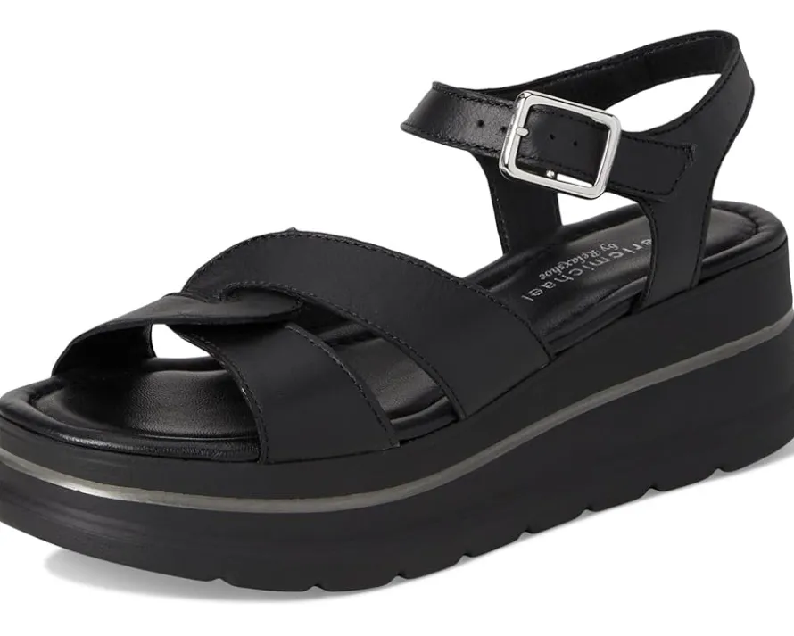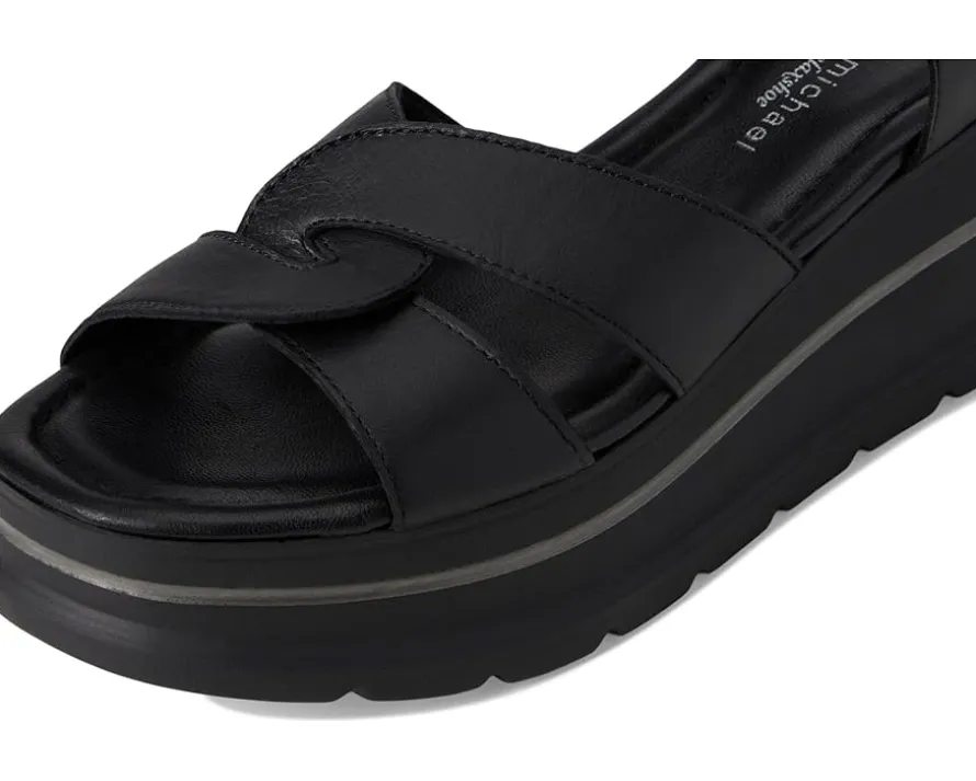 - The Eric Michael® Kinsley sandals are made of super soft leather upper with a multi-strap design, making them comfortable to wear all day and night. These heeled sandals are designed with a foam insole and leather lining for superior comfort and durability. The ankle strap with an adjustable buckle closure offers a secure fit.