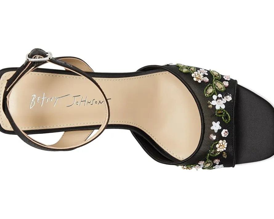 - Perfect for every elegant occasion, the Blue by Betsey Johnson™ kirra sandals are a classy pick. These heeled sandals are made of a rubber insole and faux leather lining. The faux leather upper features flower embroidery for a stylish appeal and an adjustable ankle strap for a secure fit. Match your party dresses and outfits with these stylish sandals.