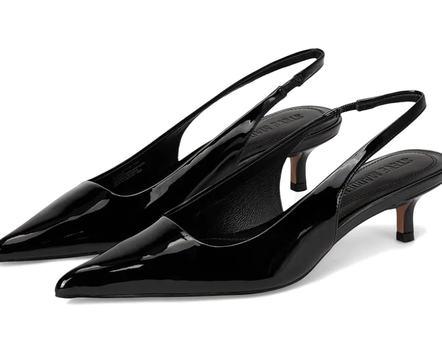- Elevate your style with the Steve Madden® Kittie Pump. This sleek pump features a kitten heel and pointed-toe design, giving you a sophisticated look. The slingback heel adds comfort and versatility to your wardrobe. The slip-on style pumps are designed with a synthetic upper, faux leather lining, and a leather sock insole. Perfect for any occasion, this shoe is a must-have for any fashion-forward individual.