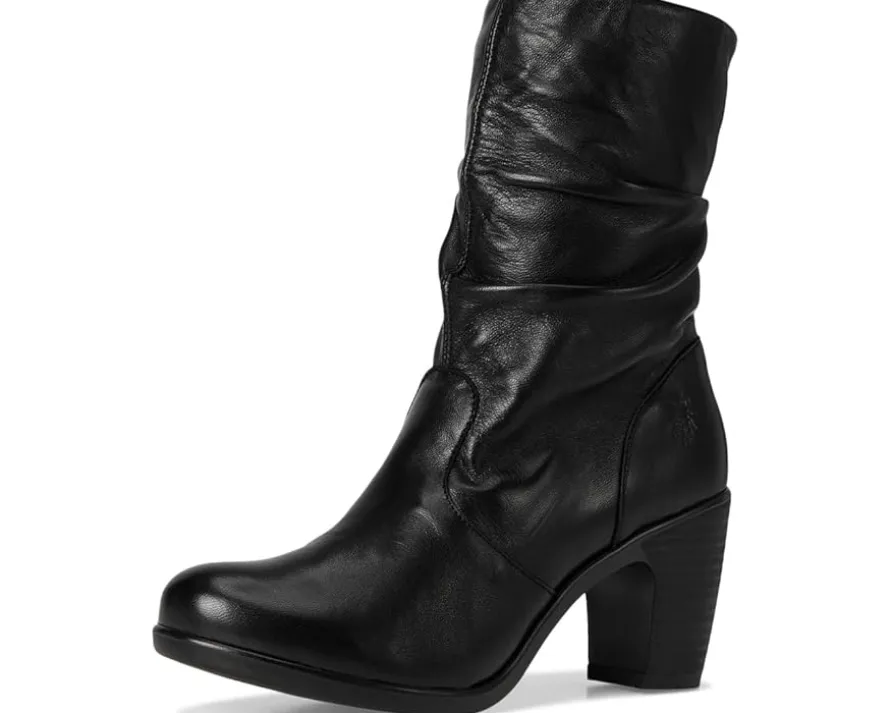 - The supple, ruched leather or suede uppers have an inside zipper making this FLY LONDON® KLEI152FLY mid-calf boot easy to get on and off. Its heel-to-toe foam insole, rounded toe shape, and flexible rubber outsole all work together to surround your feet in comfort.