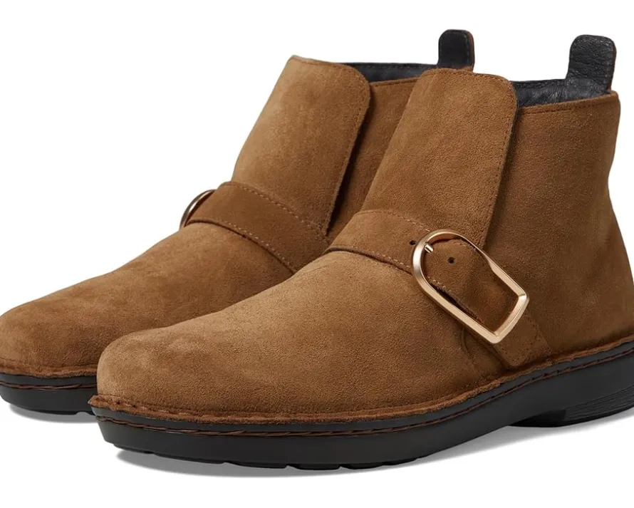 - The Naot® Kolmer boots are the perfect bootie that gives extreme comfort and stands out with a chic front buckle. These boots feature a removable, anatomic cork and latex footbed that is wrapped in pampering suede and molds to the shape of the foot with wear. The suede upper of these boots features a zippered side closure for easy wear while the leather lining offers added comfort. APMA-accepted, these ankle boots are a part of the Utopia collection.