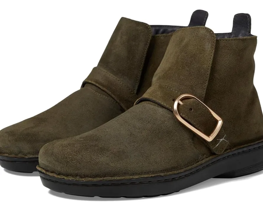 - The Naot® Kolmer boots are the perfect bootie that gives extreme comfort and stands out with a chic front buckle. These boots feature a removable, anatomic cork and latex footbed that is wrapped in pampering suede and molds to the shape of the foot with wear. The suede upper of these boots features a zippered side closure for easy wear while the leather lining offers added comfort. APMA-accepted, these ankle boots are a part of the Utopia collection.