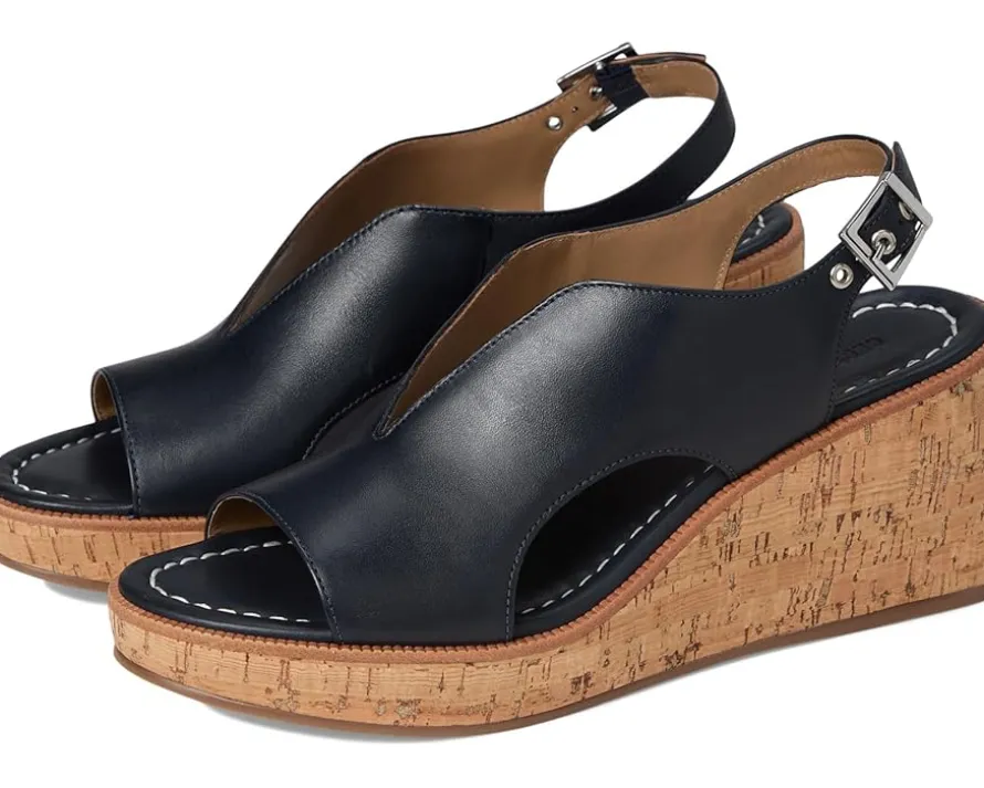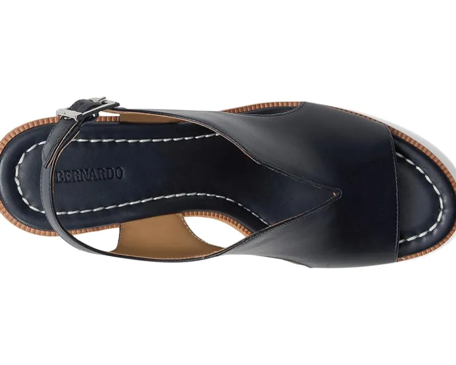 - Raise your standards. The Bernardo® Kuarta slingback wedge sandal reconsiders the essentials by uniting a signature, sculptural Bernardo upper with an elevated wedge heel that delivers both drama and comfort. Crafted from leather upper, lining, and cork insole, this pair of sandals features open round toe, buckle closure, and brand detailing on the footbed.