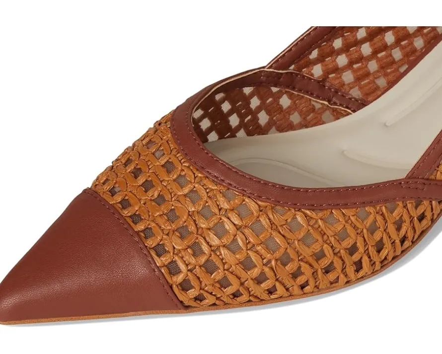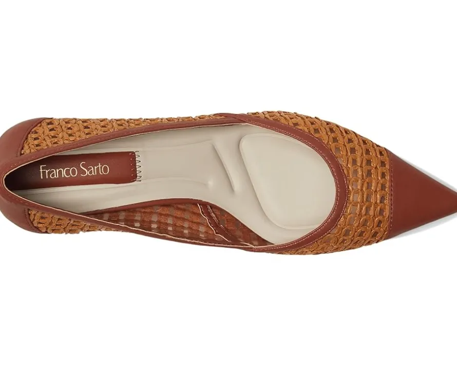 - Keep fashion at your feet wearing the Franco Sarto® L-Darcy. Crafted from leather upper sourced from Leather Working Group, faux leather lining, and synthetic insole, this pair of sandals features pointed toe, slip-on style, kitten heel, and brand detailing on the footbed.