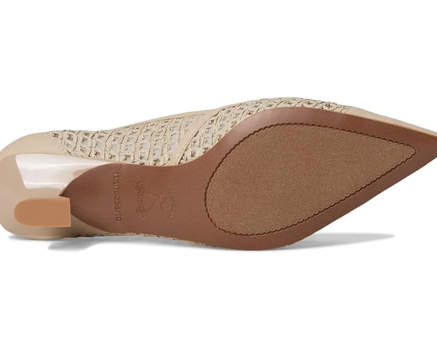 - Keep fashion at your feet wearing the Franco Sarto® L-Darcy. Crafted from leather upper sourced from Leather Working Group, faux leather lining, and synthetic insole, this pair of sandals features pointed toe, slip-on style, kitten heel, and brand detailing on the footbed.