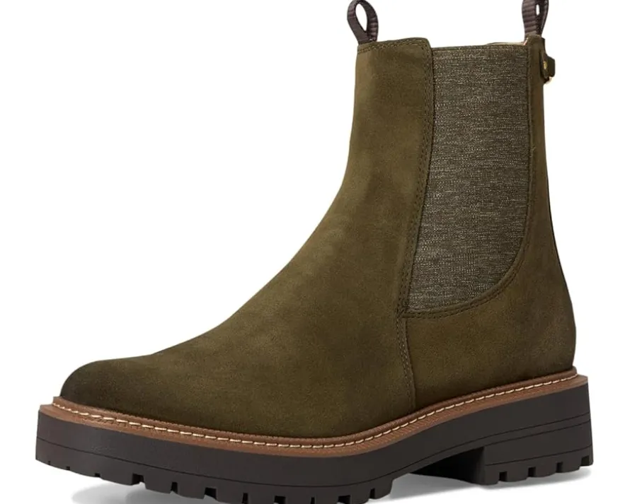 - Designed with a heavily lugged synthetic rubber outsole with a utilitarian style update to a classic Chelsea boot, the Sam Edelman® Laguna boots are the perfect choice for your outdoor adventures. The waterproof technology of these boots keeps your feet dry to take you through the day. These booties are crafted with a leather upper, polyurethane insole, and polyurethane lining. These leather booties are the perfect footwear for different occasions.