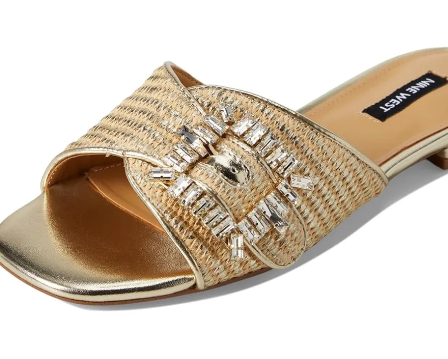 - Fall in love choosing the Nine West® Laniey flat sandals. It features a modern square toe design, an embellished buckle on the upper, and a slip-on silhouette. these sandals are anything but boring! Founded in 1978, Nine West empowers women to take on the world in style, from day to night.