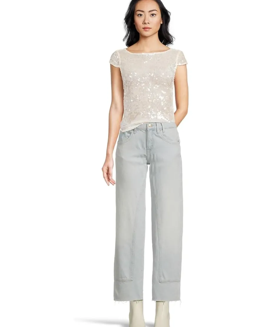 - Shine bright wearing the Free People™ Late Last Night Tee. With its form-fitting design and mesh base adorned with sequins, this tee is sure to turn heads wherever you go. The boat neckline and scoop back add a touch of elegance, while the cap sleeves and round hem keep it effortlessly chic and comfortable. Our softest intimates and best-ever base layers. Intimately is an in-house label.