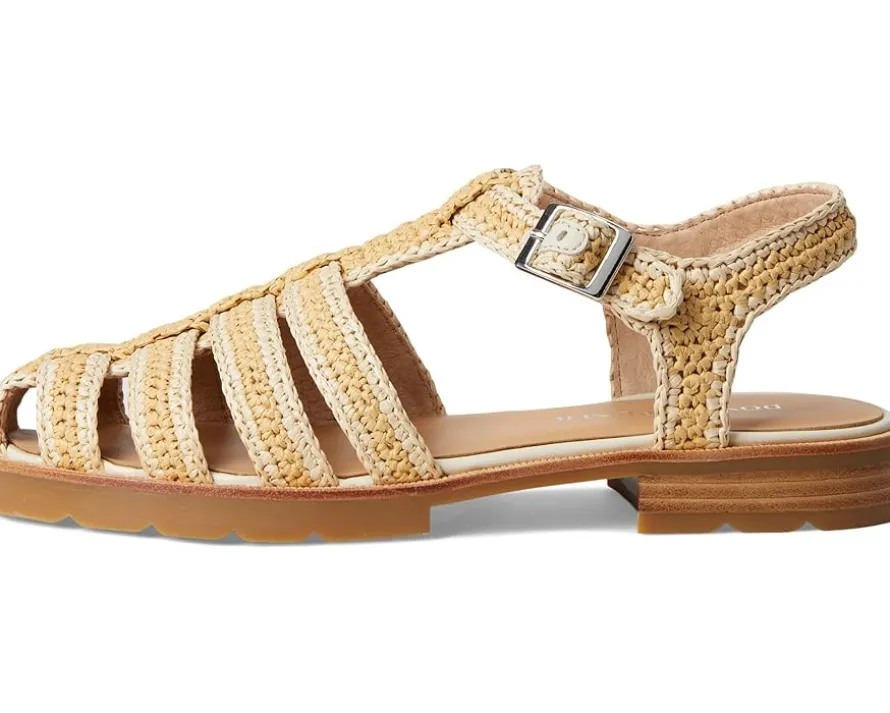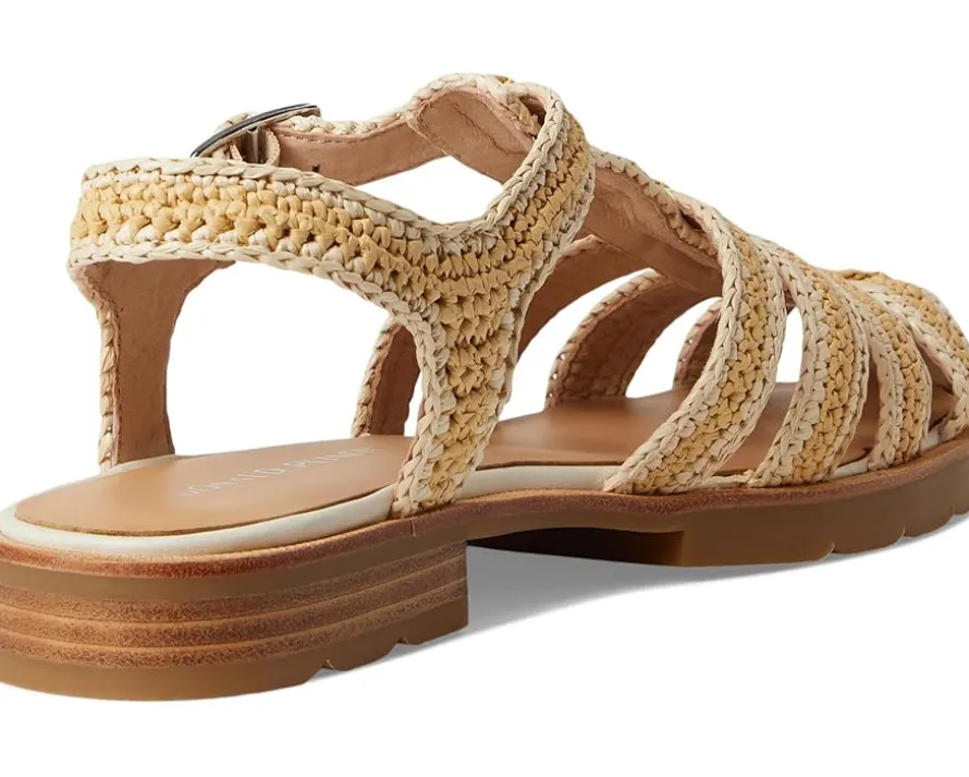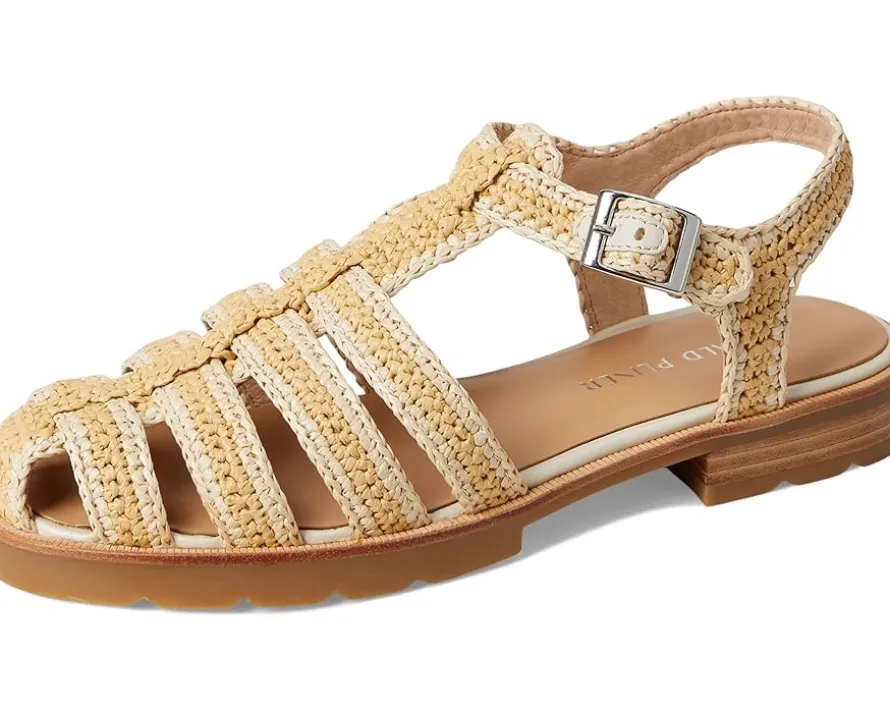 - The Donald Pliner® Layna sandals are a chic take on a classic fisherman with a woven raffia-looking style. These fisherman sandals are designed with a rubber upper, memory foam sock lining, leather insole, and leather lining. The ankle strap with an adjustable buckle closure offers a perfect fit. Walk with style and comfort wearing these slip-on sandals.