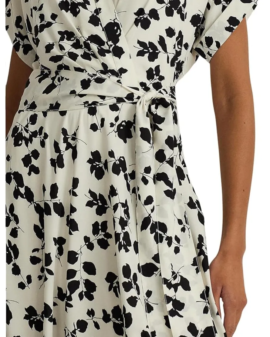 - Featuring a two-tone leaf print allover for a chic style, the LAUREN Ralph Lauren® Leaf-Print Belted Crepe Dress is an ideal choice for parties and events. This printed dress comes with a removable self-belt and threaded belt loops for a refined look. The short roll-tab sleeves and a surplice neckline offer added comfort. Fully lined, this A-line dress is perfect to flaunt your fashion and style.