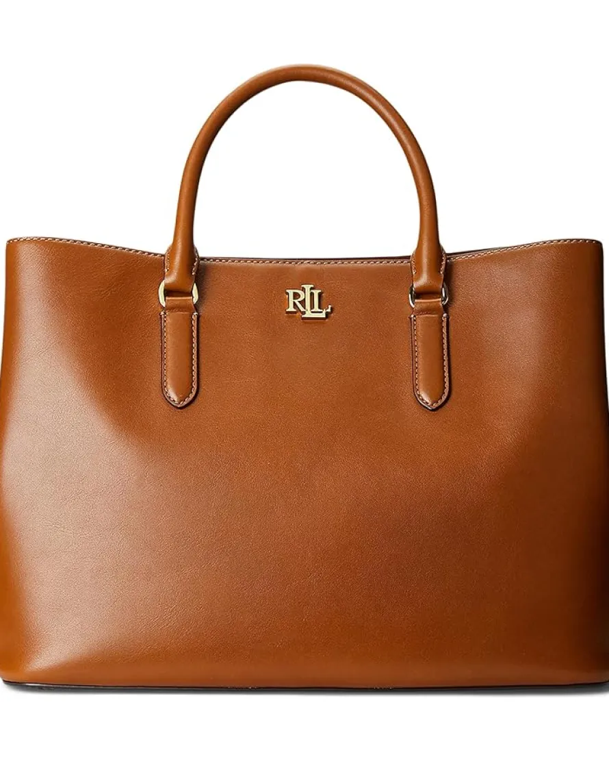 - Enjoy a naturally smooth finish getting LAUREN Ralph Lauren® Leather Large Marcy Satchel for everyday travels.