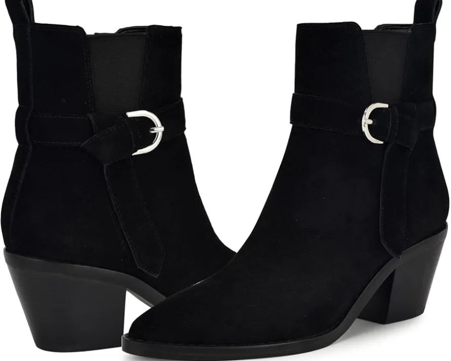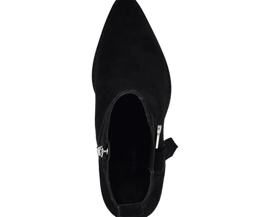 - Step up your style game donning Nine West® Lemone! These dress booties boast a chic suede upper and a stylish pointy toe, ensuring you turn heads wherever you go. The PU lining and synthetic rubber outsole offer comfort and durability, while the zippered side closure and stretchy gores provide a secure fit. Ankle-high with a versatile block heel, they seamlessly transition from day to night. Since 1978, Nine West has empowered women to take on the world in style.